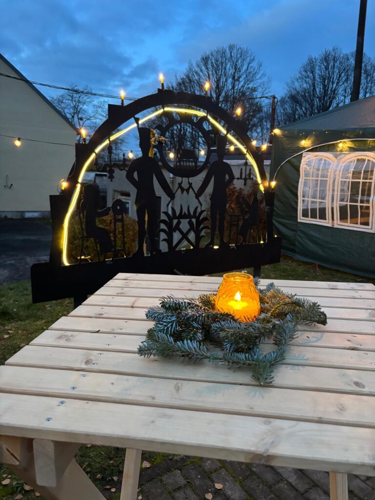 Was mich jedes Jahr besonders berührt, ist die Hingabe, mit der die einzelnen Abende vorbereitet werden. Silke und André Kaiser verwandeln ihre Garage traditionell in ein kleines Märchenland. Familie Redler öffnet ihren Hof und verwöhnt uns kulinarisch. Die Spielplatzgruppe gestaltet Aktionen für die Kleinen, der Kirchenvorstand öffnet die Türen der Kirche und bringt besinnliche Momente ein.