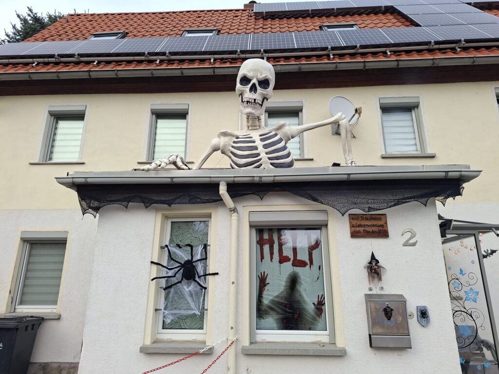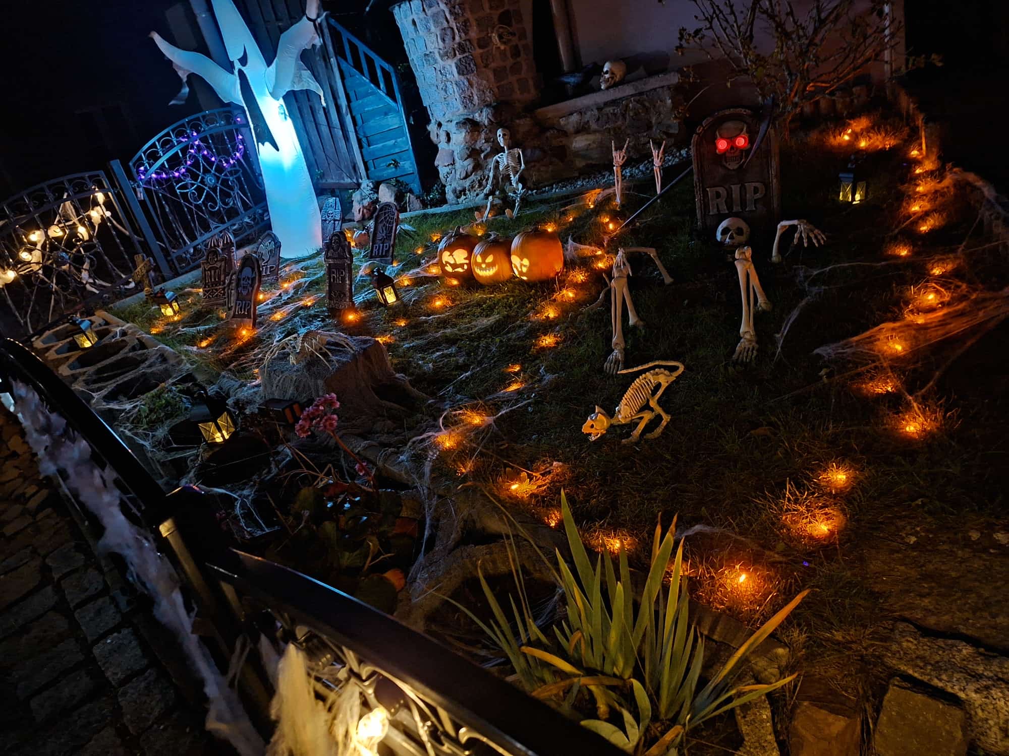 Nicht nur die Deko ist beeindruckend, auch die Technik dahinter: Viele Elemente sind selbst gebaut, wie zum Beispiel der fliegende Besen über der Einfahrt. Die Familie experimentiert mit 3D-Druckern, um eigene Laternen und Spinnennetze herzustellen. Animatronics aus den USA, wie eine bewegliche Hexe sorgen für besondere Effekte. Die Kürbisse „sprechen“ und begrüßen jeden Besucher, das Riesenskelett auf dem Vordach grinst unaufhörlich ins Dorf.